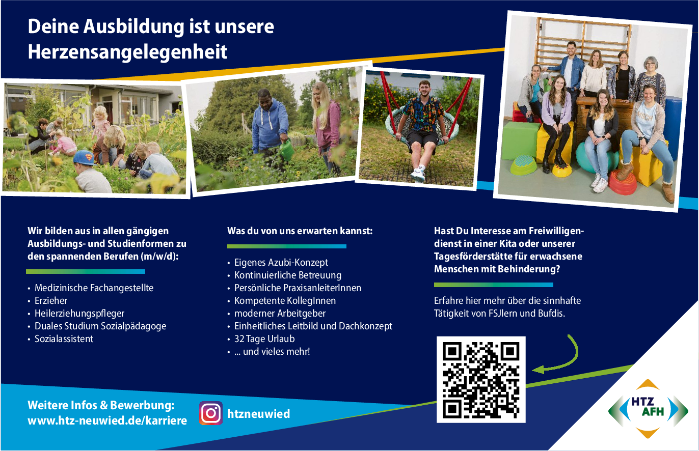 Das HTZ ist ein großes Team, das sich für Kinder, Jugendliche und Menschen mit Behinderung stark macht. Wir kümmern uns mit über 700 Mitarbeitenden an verschiedenen Standorten im nördlichen Rheinland-Pfalz um Menschen, die Unterstützung brauchen – und das in ganz unterschiedlichen Bereichen: