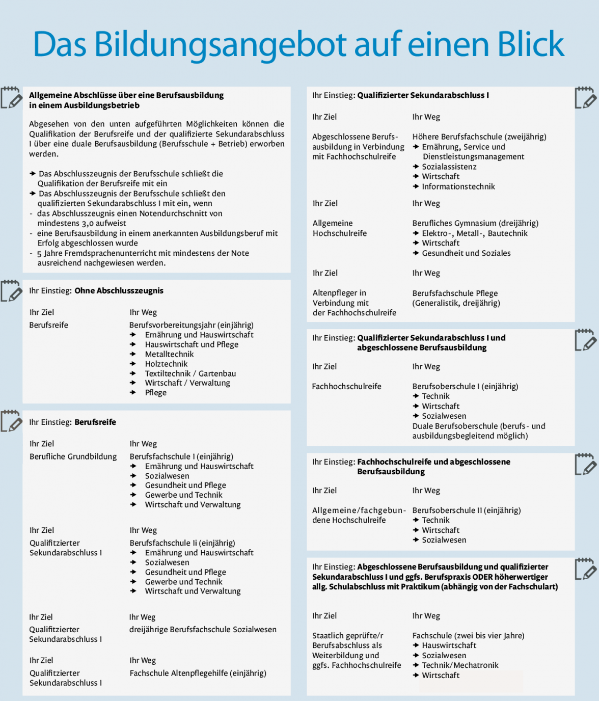 Schwerpunkte: Wirtschaft, Gewerbe, DAZ (Deutsch als Zweitsprache), Technik, Gesundheit und Pflege für Menschen mit Beeinträchtigungen