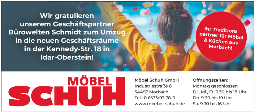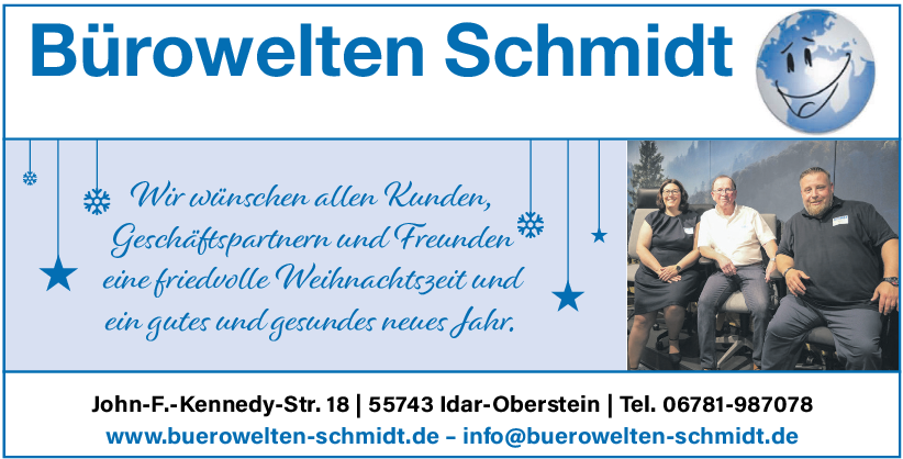 Ein helles Foyer, klare Linien, moderne Formen – wer die neuen Räume der Bürowelten Schmidt im Kennedy-Center betritt, merkt sofort: Hier hat sich etwas verändert. Nach Jahrzehnten in der Idarer Fußgängerzone hat das Traditionsunternehmen im Sommer seinen neuen Standort im Gewerbepark Nahetal eröffnet. Auf rund 350 Quadratmetern präsentieren Oliver und Sabrina Fuhr dort zeitgemäße Einrichtungslösungen für Büros und Arbeitswelten, die Funktionalität und Wohlfühlen verbinden.