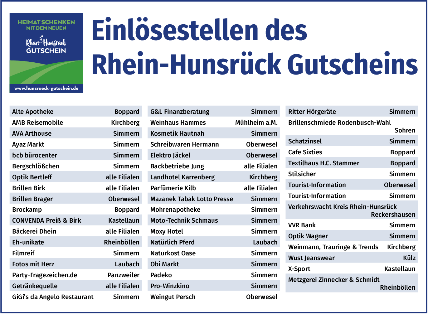 Der Rhein-Hunsrück Gutschein hat sich in der Region als vielseitiges Geschenk etabliert. Gleichzeitig bietet er Unternehmen eine Möglichkeit, ihren Mitarbeitenden einen geldwerten Vorteil zukommen zu lassen.