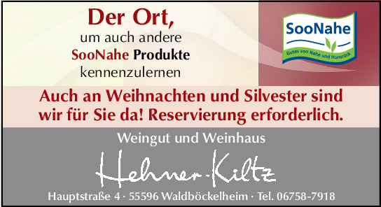 - Eine Übersicht aller SooNahe-Gastronomen befindet sich auf der Website www.soonahe.de