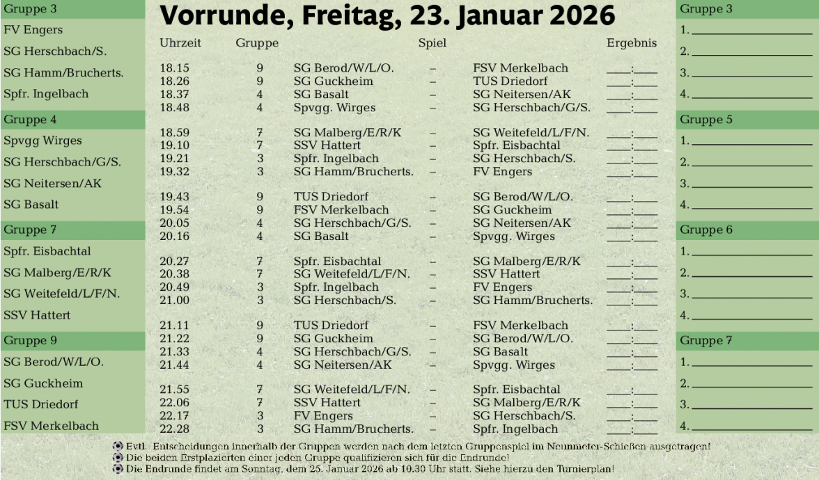 Überregionales Hallenfußballturnier vom 23. – 25. Januar 2026 in der Rundsporthalle Hachenburg