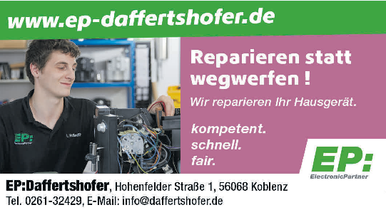 EP Daffertshofer steht für fachkundige Reparaturen von Haushalts- und Gewerbegeräten aller Marken. Die erfahrenen Techniker erkennen Fehlerbilder und sorgen für eine zeitnahe Instandsetzung. Viele Ersatzteile haben sie direkt im Servicefahrzeug dabei, sodass Defekte oftmals sofort behoben werden können. Auch für den professionellen Einsatz in Gastronomie und Gewerbe bietet das Team kompetente Unterstützung.