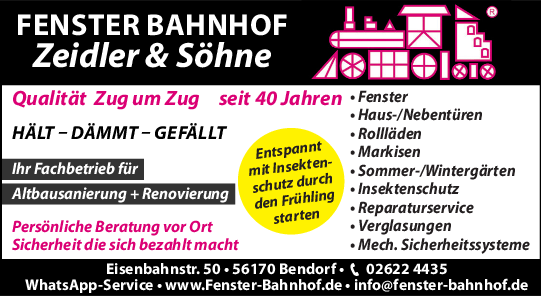 Fenster Bahnhof Zeidler steht für Kompetenz und Verlässlichkeit in allen Fragen rund um moderne Fensterlösungen.