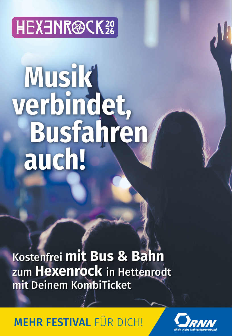 Detaillierte Informationen zum Line-up und den Tickets finden sich unter www.hexenrock.de. Alle Fahrpläne für die Hin- und Rückfahrten, die unter anderem Verbindungen nach Rhaunen, Idar-Oberstein und Fischbach-Weierbach bis tief in die Nacht abdecken, sind unter www.rnn.info abrufbar.