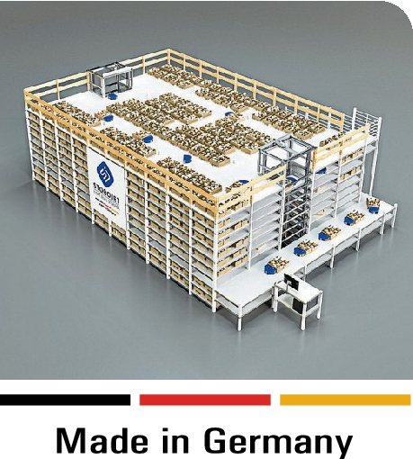 Das automatische Kleinteilelager STOROJET bietet kleinen und mittleren Unternehmen einen wirtschaftlichen und zukunftsorientierten Einstieg in die Lagerautomatisierung. Entwickelt und gefertigt in Rheinland-Pfalz steht das System für Effizienz, Präzision und Zuverlässigkeit im Materialfluss. Ab 100 Quadratmetern und ab 299.000 Euro lässt sich STOROJET individell realisieren und optimal an bestehende Gebäude, Prozesse und Anforderungen anpassen.