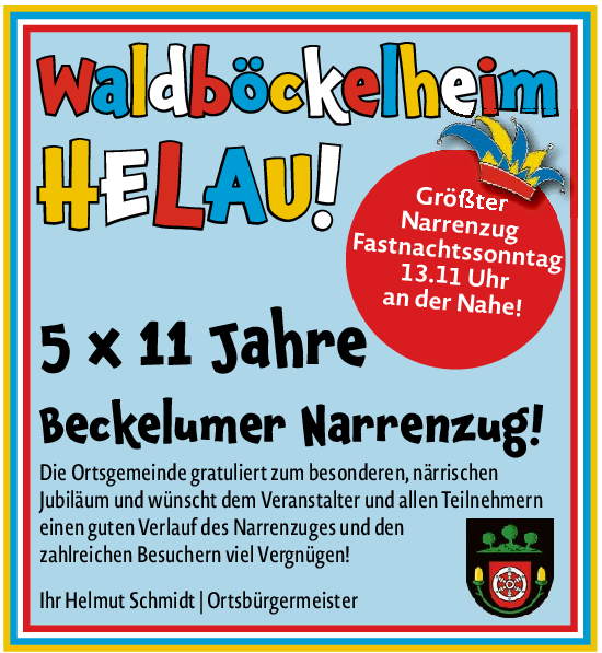 Bereits eine Woche zuvor gehört die Bühne dem Nachwuchs. Am Samstag, 7. Februar, beginnt um 14.11 Uhr die Veranstaltung „Jugend in die Bütt“ ebenfalls im Gasthaus Hartmann-Dreher. Junge Aktive zeigen dort, wie lebendig und kreativ die Fastnacht der nächsten Generation ist.