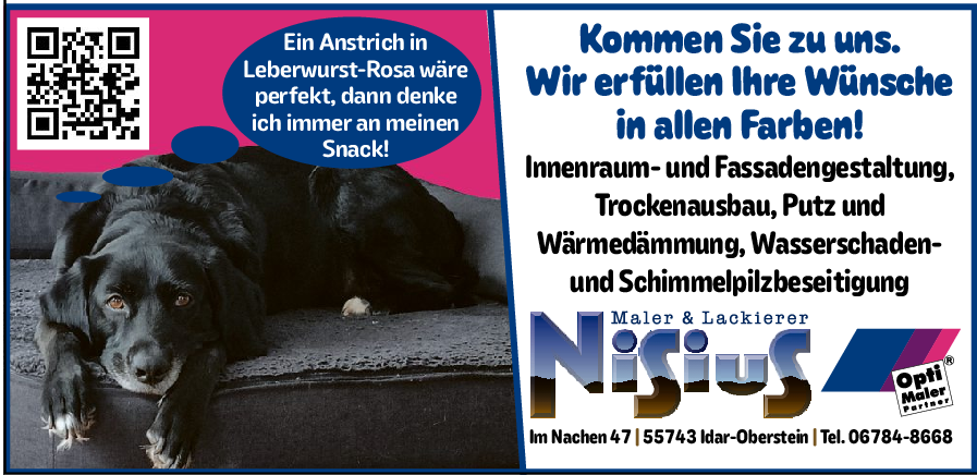 Kunden, die sich für diese Dienstleistung interessieren, können sich unter der Telefonnummer 06784/8668 melden oder weitere Infos auf der Internetseitewww.maler-nisius.de abrufen.
