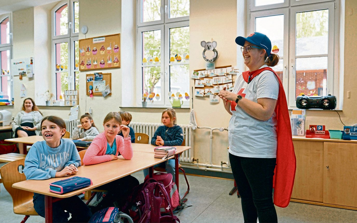 Dabei besuchen die SUPERHELFER-Expert:innen auch Kindertagesstätten, Kindergärten und Grundschulen und bieten hier spannende und interaktive Lerneinheiten an. Die Einheiten sind so konzipiert, dass sie sich sehr leicht in den regulären (Schul-)Unterricht integrieren lassen.