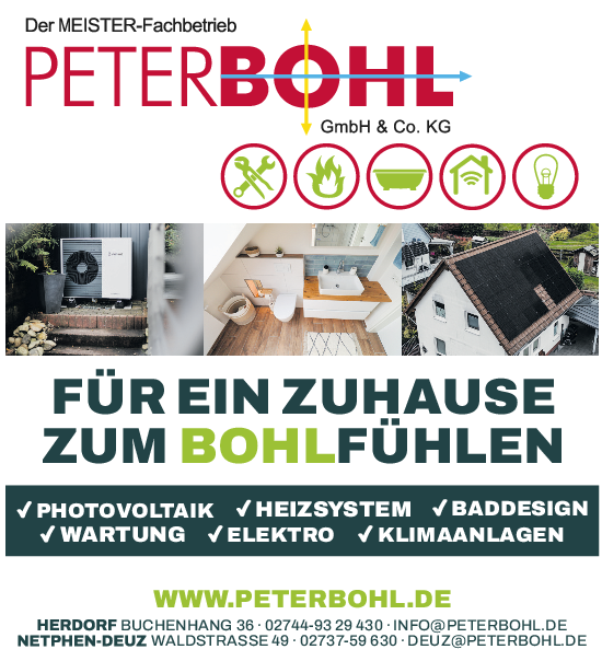 Am Samstag, 24. Januar 2026, lädt die Peter Bohl GmbH & Co. KG in Herdorf zum Tag der offenen Tür ein. Von 10 bis 16 Uhr steht der Betrieb in der Ziegeleistraße 10 offen für alle, die sehen möchten, wie Heiztechnik, Energieversorgung und Badgestaltung heute zusammengedacht werden.