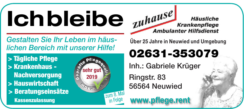 Kostenlose Beratung über das ganzheitliches Angebot als Pflegedienst erhält man unter 02631 343194.