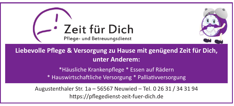 Von der Hauswirtschaft, Essen auf Rädern über Betreuung, grundpflegerische Versorgung, medizinische Versorgung bis hin zur Palliativbegleitung zu Hause bietet „Zeit für Dich“ alles aus einer Hand.