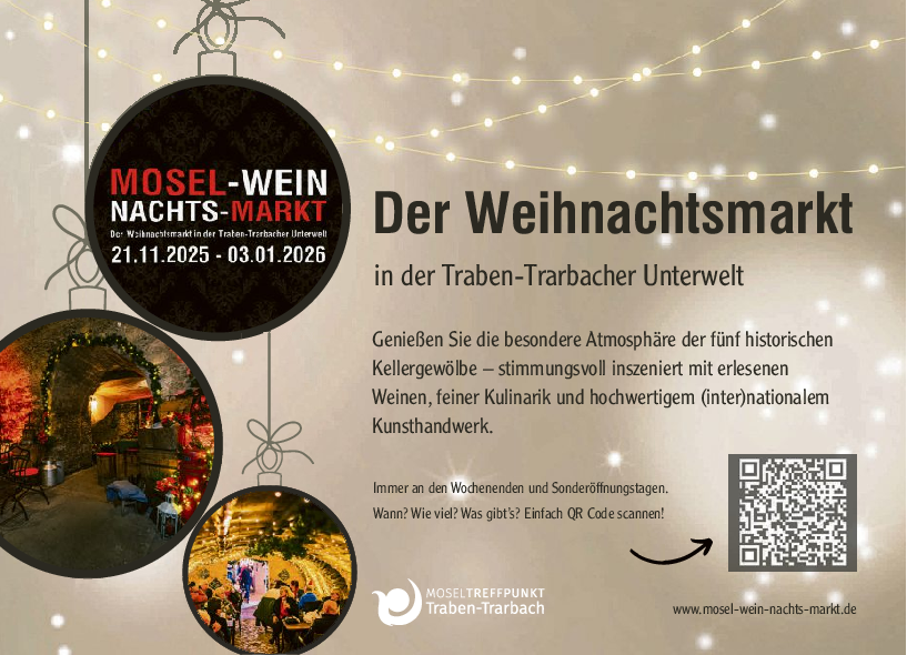 Weitere Informationen, Öffnungszeiten und Programmpunkte finden sich unter www.mosel-wein-nachts-markt.de.