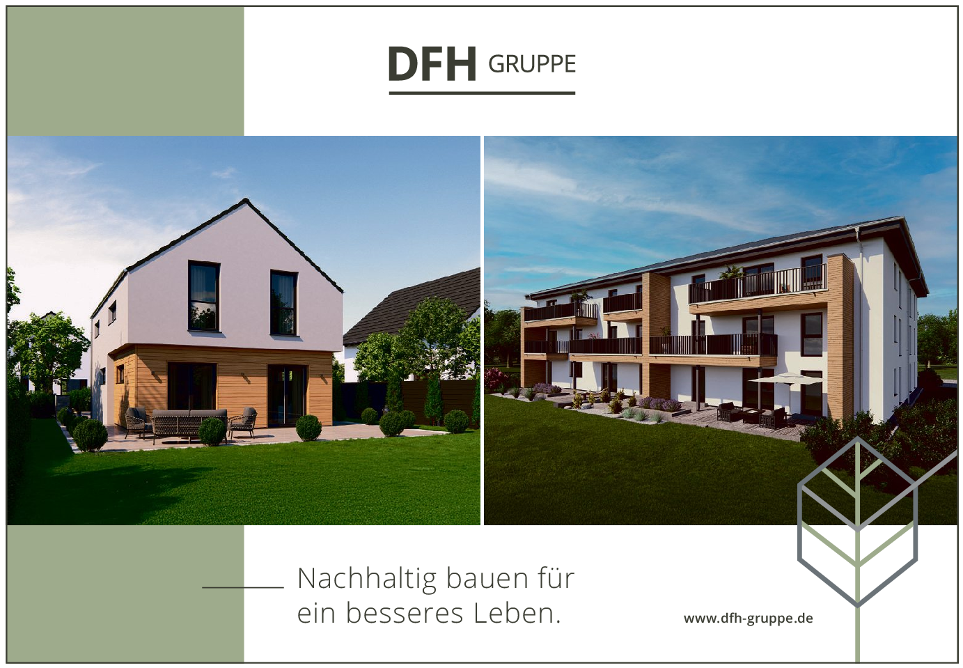 So entsteht Wohnraum, der Verantwortung übernimmt für Familien, für Kommunen, für kommende Generationen. Nachhaltig bauen bedeutet, Zukunft zu gestalten. Und genau das ist der Weg, den die DFH GRUPPE seit Jahren geht - aus Überzeugung, aus regionaler Stärke und mit Blick auf ein besseres Leben für alle.
